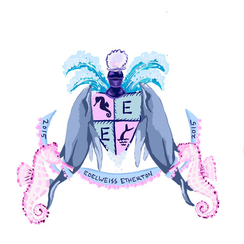 Whales, Seahorses, and Oyster with Pink Pearl